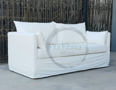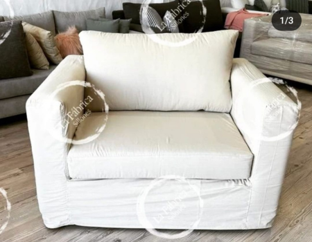 Este sillón se caracteriza por tener su apoya brazo a la misma altura del respaldo, realizado con funda lo cual permite el lavado en casa. El almohadón del asiento puede ser entero o divido.