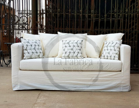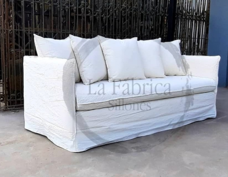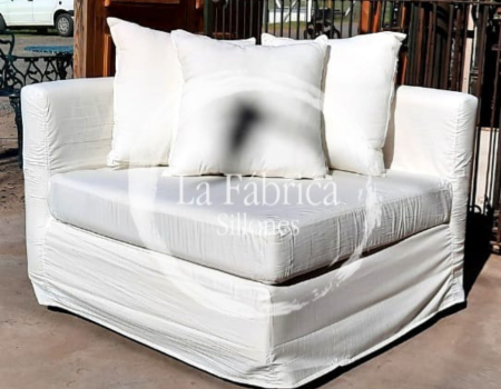 Sillón individual muy versatil de 1.00 x 1.00mt, tapizado en lienzo con funda en tusor, este modelo puede ser combinable con modúlos o bien con opción de otro igual para formar